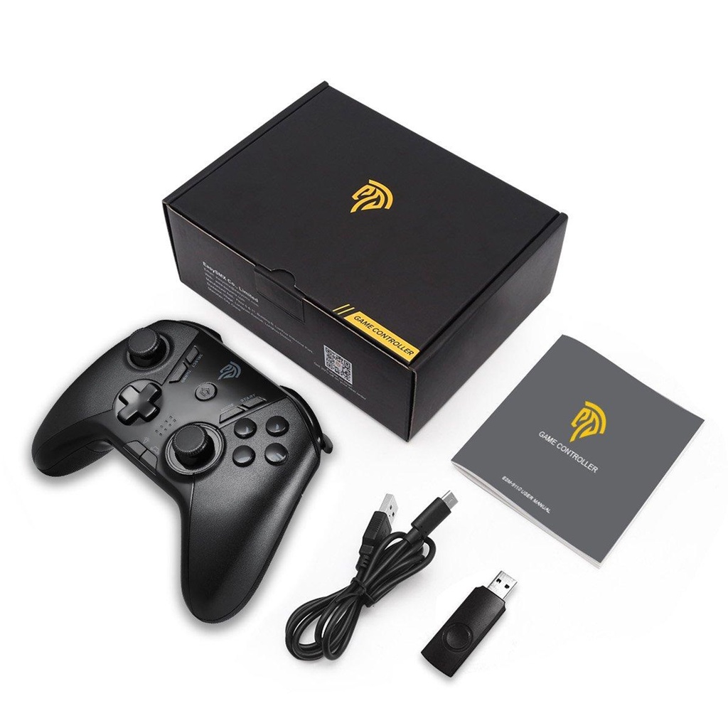 - Thiết kế chắc chắn, kiểu dáng quen thuộc, dễ sử dụng Bộ sản phẩm Full Box bao gồm 1 tay cầm, 1 dây sạc, 1 đầu nhận tín hiệu USB 2.4G, 1 sổ hướng dẫn sử dụng.