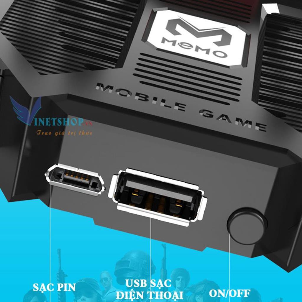 Tay Cầm Chơi Game Memo AK77 Có Quạt Tản Nhiệt, Kiêm Sạc Dự Phòng 1200mah, Tay Cầm Chơi PUBG, Rule of Survival, Free Fire, Liên Quân Mobile Cho iPhone, iPadTÍNH NĂNG NỔI BẬT: