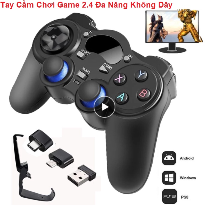 Tay Cầm Chơi Game PS3 Không Dây Trên Điện Thoại, Máy Tính - Tivi Box - PS - Không Dây 2.4 - Tặng Kèm Kẹp ĐT