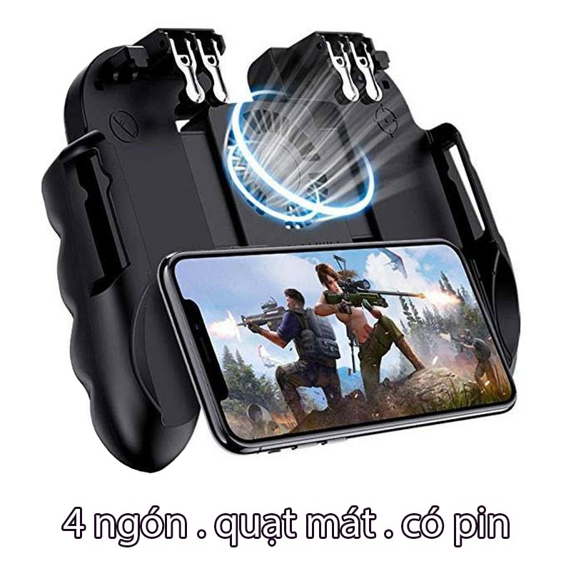Tay cầm chơi game PUBG, FreeFire, Rules of Survial (ROS) - Tay cầm chơi game thông minh tản nhiệt với quạt, tích hợp nút chơi game mobile.