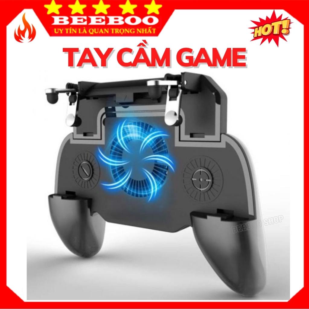 Tay cầm chơi PUBG, tay cầm chơi game điện thoại - SR GamePad. Phụ kiện hỗ trợ chơi PUBG Mobile, RULES, Free Fire - Tiện dụng giải nhiệt cho điện thoại bị nóng ít bị chai pinPhụ kiện chơi game mobile. Phiên bản tay cầm tích hợp 4 trong 1: tản nhiệt điện thoại, nút hỗ trợ chơi game, gamepad, sạc dự phòng