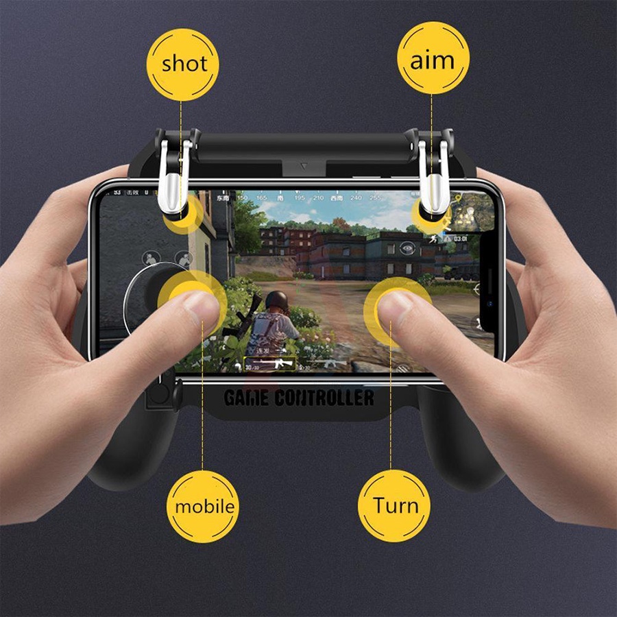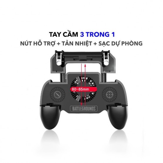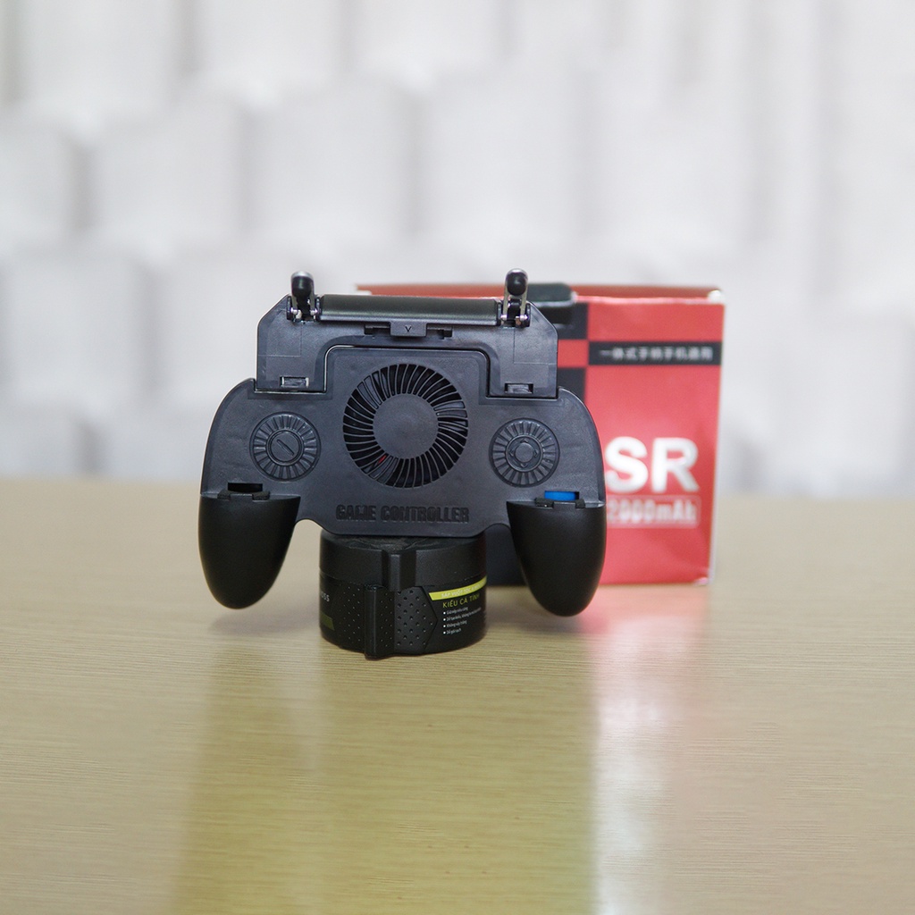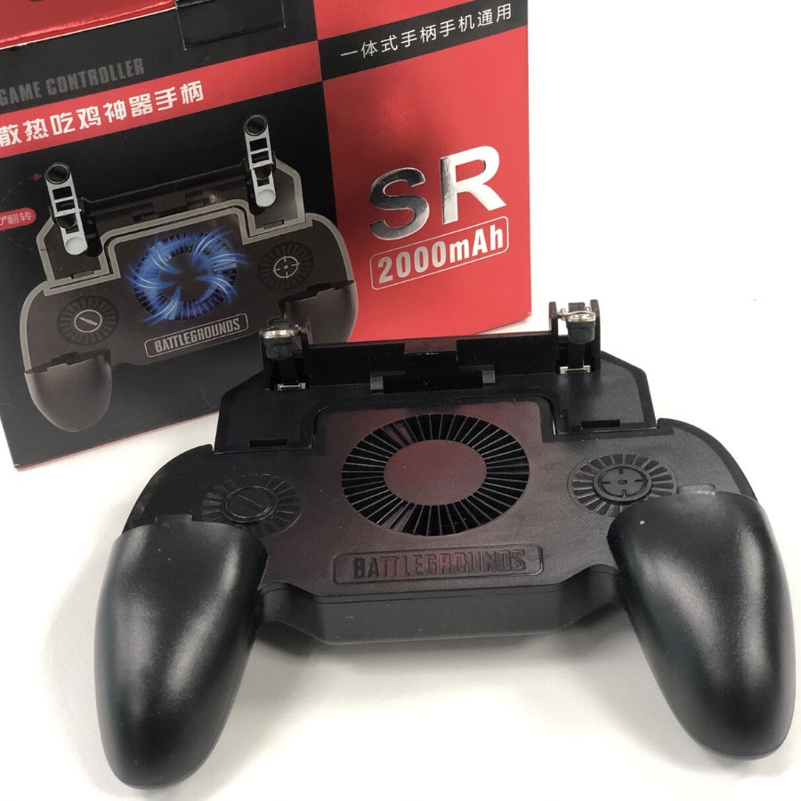 - Tay cầm chơi game 2000MAh SR kiêm sạc và quạt tản nhiệt chơi game PUBG, liên quân,.... tích hợp 4 chức năng trong một: tay cầm game, đế tản nhiệt, sạc dự phòng, nút bấm game