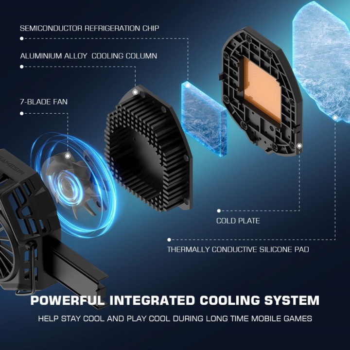 ◾ Quạt tản nhiệt lớn ở giữa giúp việc tản nhiệt được tốt nhất, giảm nhiệt độ điện thoại của bạn một cách nhanh chóng mang lại cảm giác mát lạnh. Trang bị đèn Led RGB trông độc đáo hơn mang lại sự phấn khích khi chơi game.
