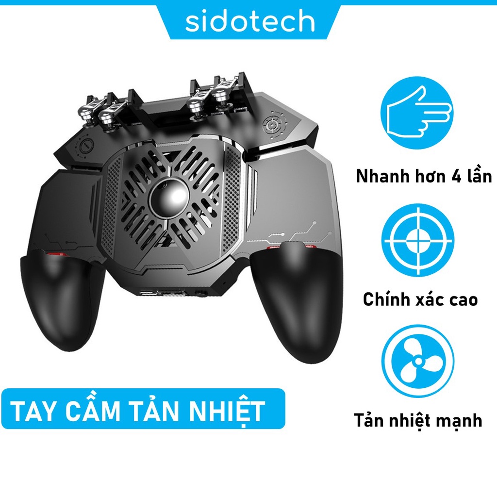 Tay cầm chơi game tản nhiệt điện thoại SIDOTECH Memo AK88 có quạt tản nhiệt bắn PUBG / FREE FIRE / ROS kết nối 6 ngón