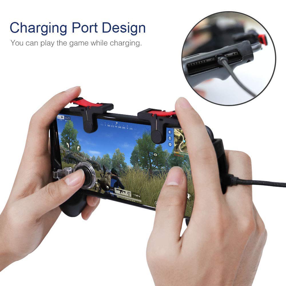 Tay cầm chơi game và 2 nút cảm ứng D9 bắn Free Fire Pubg Ros hỗ trợ bắn 4 ngón