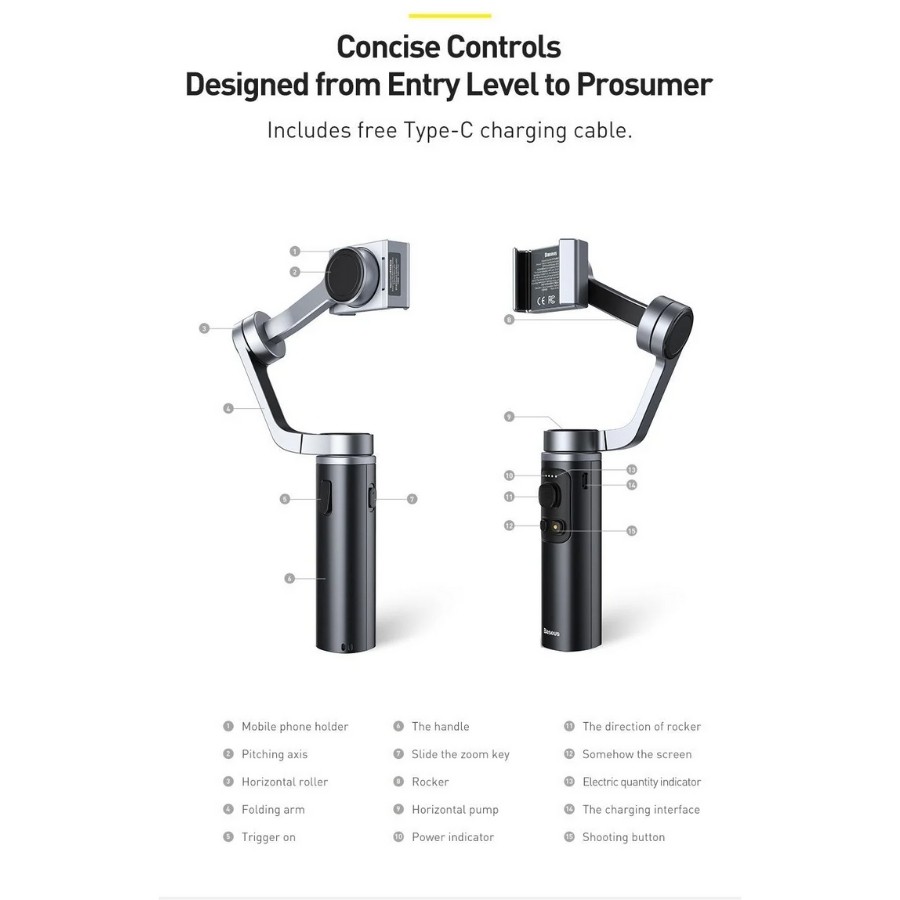 Giới thiệu sản phẩm- Là người kế nhiệm tiếp theo của dòng gimbal Baseus, tay cầm được nâng cấp về kiểu dáng nhỏ gọn hơn, có thể gập lại giúp việc mang theo bên mình dễ dàng hơn.