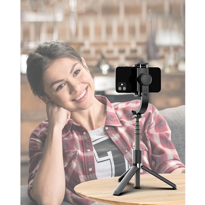 Tay cầm chống rung điện tử Gimbal L08 dài hơn có điều khiển bluetooth - Có chân đỡ tự đứng - Tripod chắc chắn gọn nhẹ