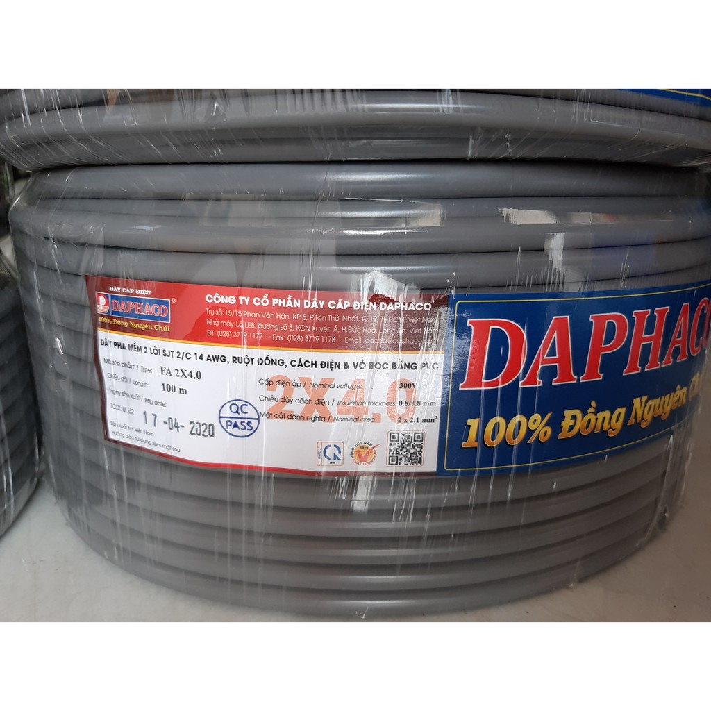 Dây điện Daphaco Fa tròn 2x4.0 ( Xám tròn 2 sợi ) 4000W