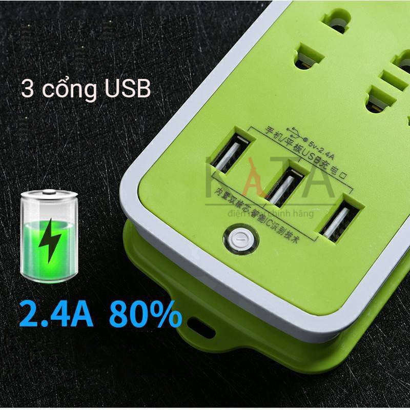 – Ngoài ra sản phẩm còn được tích hợp 3 cổng cắm USB, có thể sạc cho tất cả các thiết bị di động sử dụng cổng USB như smartphone, máy tính bảng,....