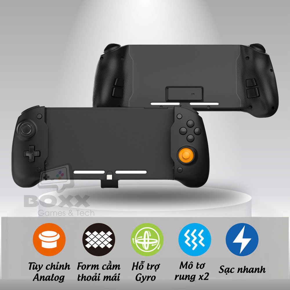- Tay cầm thiết kế với cặp mô tơ rung 2 bên giúp trải nghiệm chơi game thật nhất, Gyro ( cảm biến đa chiều ) trang bị sẵn giúp chơi game đua xe, bắn súng dễ dàng.
