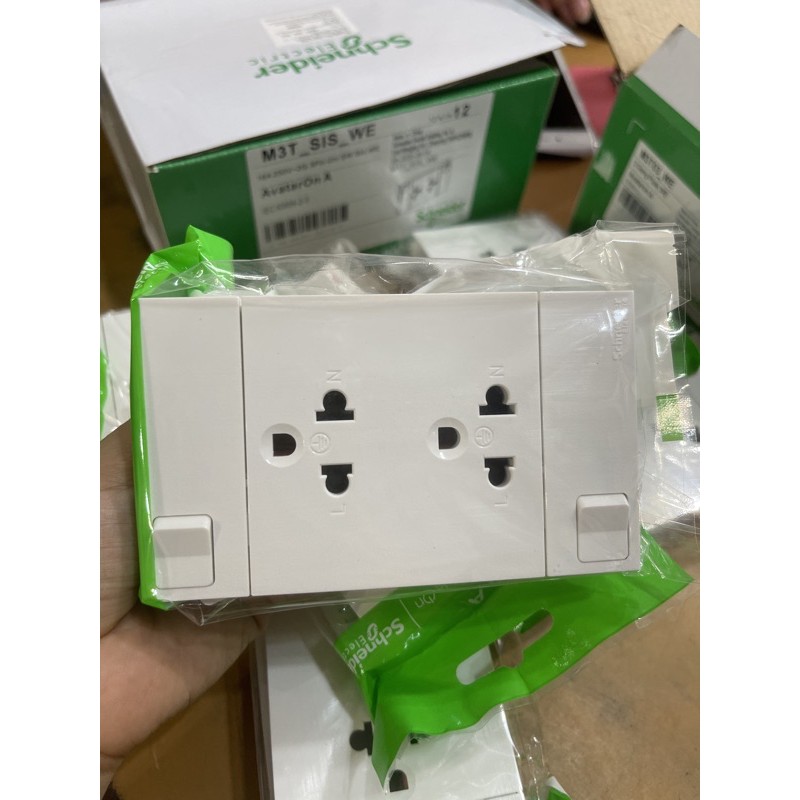 Thiết Bị Điện Gia Dụng > Mạch điện & Phụ tùng > Ổ cắm điện & Dây nối || Bộ ổ cắm đôi 3 chấu M3T_SIS_WE SchneiderCòn hàng
