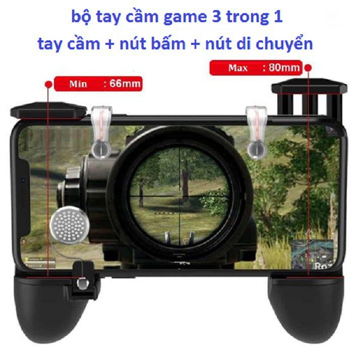 Tay cầm game 3 trong 1 phiên bản tay cầm game kèm nút bấm, nút di chuyển cho game PUBG, ROS, Free Fire..