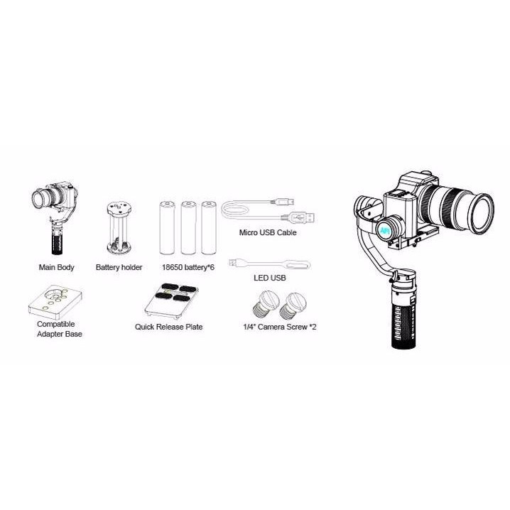 Hôm nay thietbiquayphim.com xin giới thiệu đến bạn Gimbal chống rung 3 trục đến từ hãng sản xuất AFI với khả năng xoay 355 độ. Sản phẩm này được thiết kế phù hợp với các dòng máy 5D, 6D, 7D.. có trọng lượng 1.7kg. Phía dưới tay cầm có đầu ốc 1/4 giúp gắn lên monopad hay tay cầm hỗ trợ. Pin 18650 3.7V 2600mAh * 3 cho thời gian sử dụng liên tục từ 3-4h.THÔNG SỐ KỸ THUẬT:
