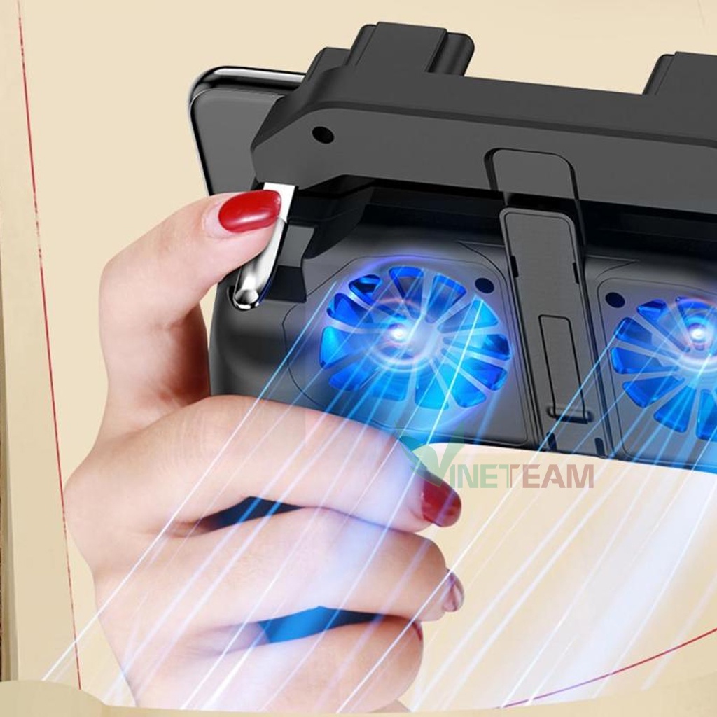 Tay cầm chơi game PUBG, FreeFire, Rules of Survial (ROS) - Tay cầm chơi game thông minh tản nhiệt với quạt, tích hợp nút chơi game mobile.