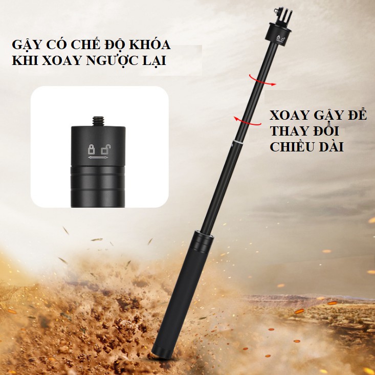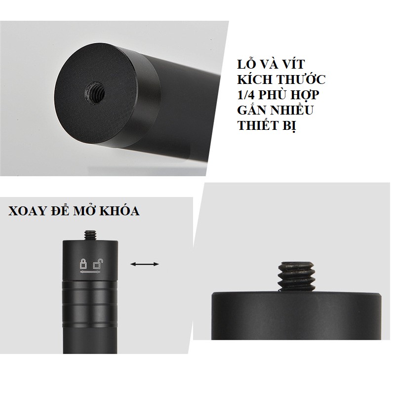 - Gậy có lỗ gắn thêm tripod ở dưới đáy