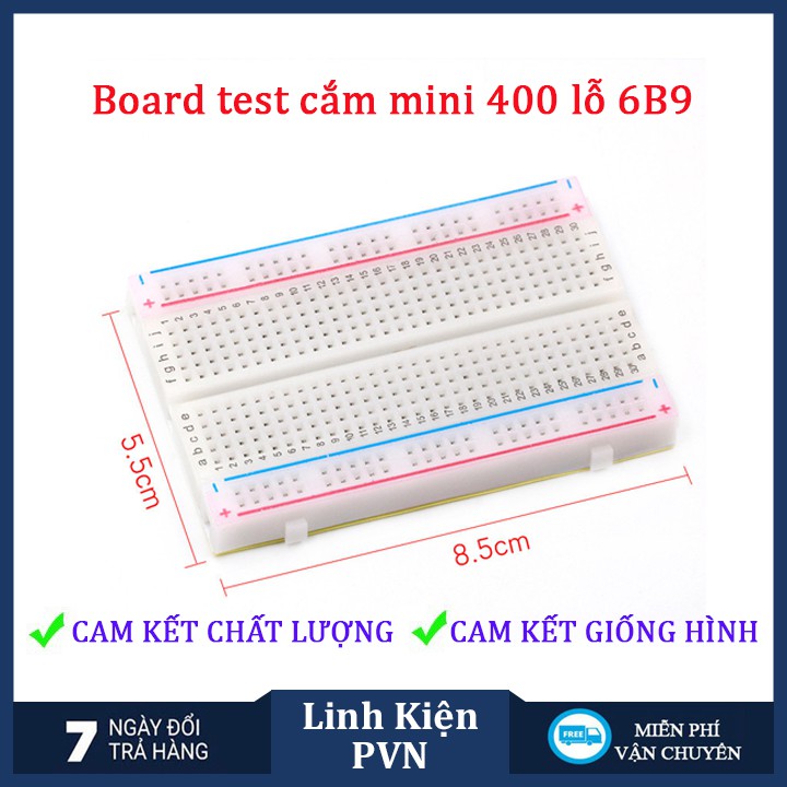 ✅ [CAM KẾT CHẤT LƯỢNG] Board test cắm Mini 400 lỗ 8.5cm × 5.5cm - Bread board chất lượng cao- Board test là sản phẩm không thể thiếu trong quá trình học tập điện tử. Thường được sử dụng để học tập, thực hành lắp ráp các bảng mạch mẫu và kiểm tra linh kiện điện tử giúp bạn dễ dàng thực hiện các mạch điện thực tế trước khi hàn trực tiếp linh kiện lên board mạch đồng.