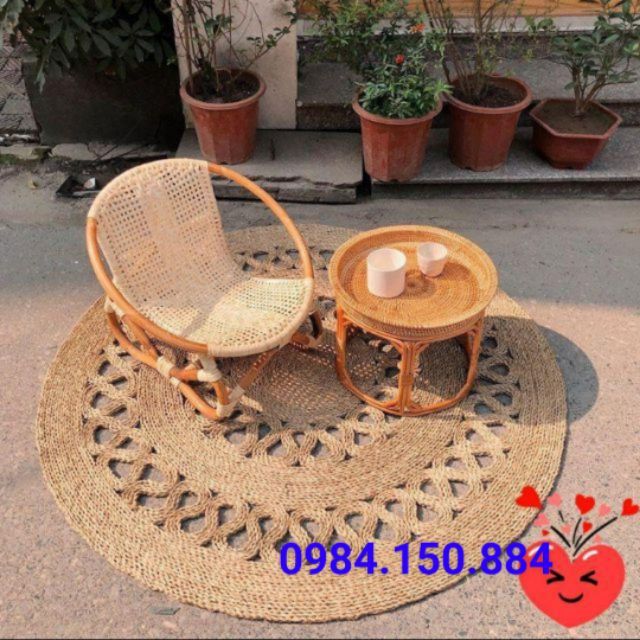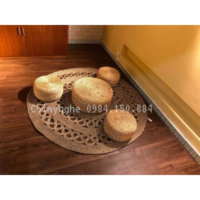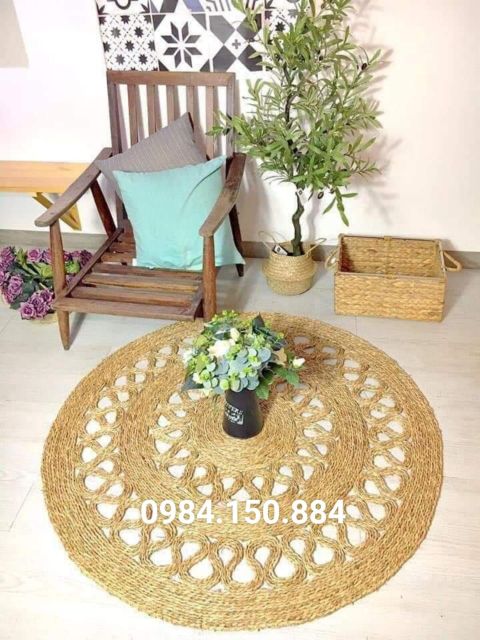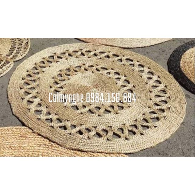 (Cam kết hàng đẹp) Thảm cói hoa kiểu thắt túi 1m2, 1m5