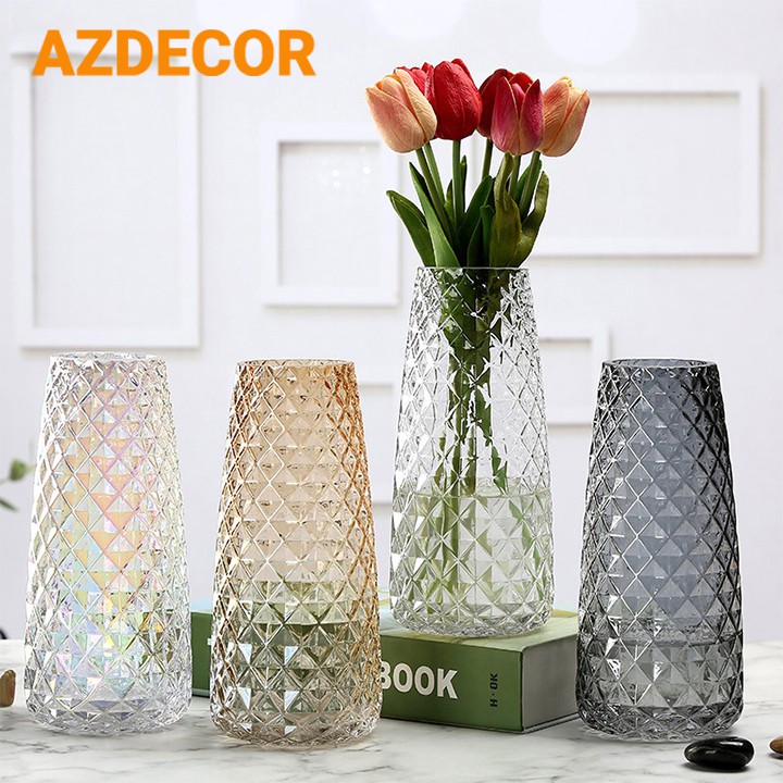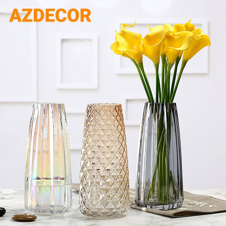 ✔️ Lọ hoa được làm từ chất liệu thủy tinh với nhiều màu sắc và kiểu dáng hiện đại theo phong cách châu Âu, dễ dàng phối với bất kỳ loại hoa nào.