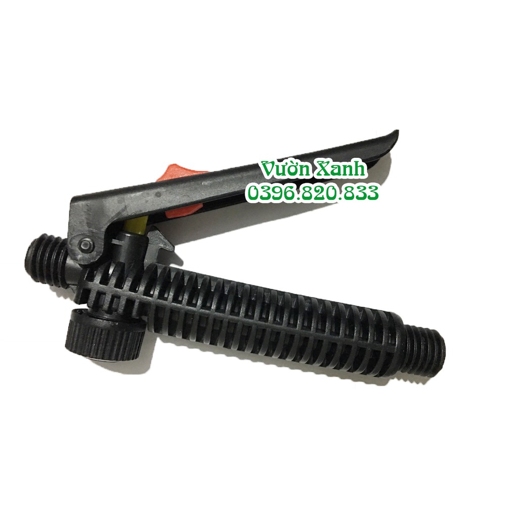 - Tay bóp bằng nhựa cao cấp dạng lò xo lẩy, có chức năng phun ngắt quãng và khoá phun liên tục.