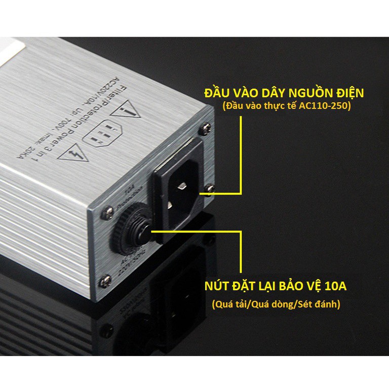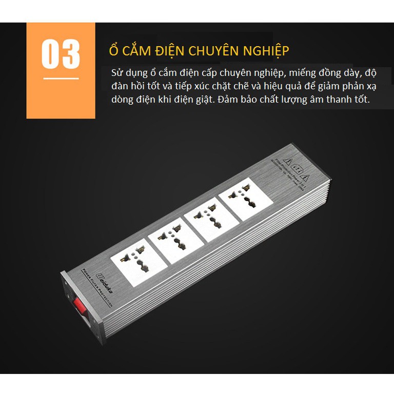 + Ổ lọc điện có tính năng chống sét, chống cháy nổ. Đảm bảo an toàn cho thiết bị âm thanh, nâng cao tuổi thọ cho thiết bị của bạn