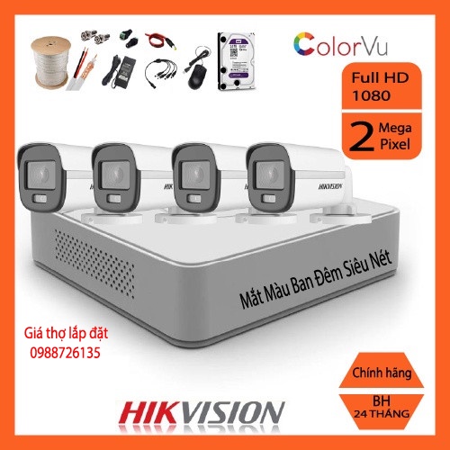 [ CAM MÀU BAN ĐÊM ] Trọn bộ 1/2/3/4 camera giám sát hikvision chính hãng , kèm HDD - Đầy đủ phụ kiện lắp đặt