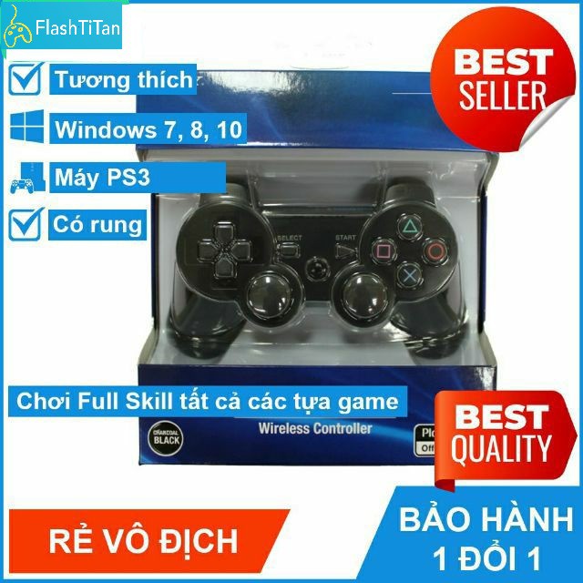 Tay cầm PS3 không dây loại tốt - Tay cầm chơi game PC, Laptop, chơi PES, FO4 tối ưu - Tặng Dây Sạc