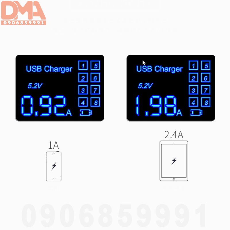 Giới thiệu Bộ ổ cắm sạc,dock sạc ổ cắm điện usb điều chỉnh điện áp 8 socket 40W (CD-A19)