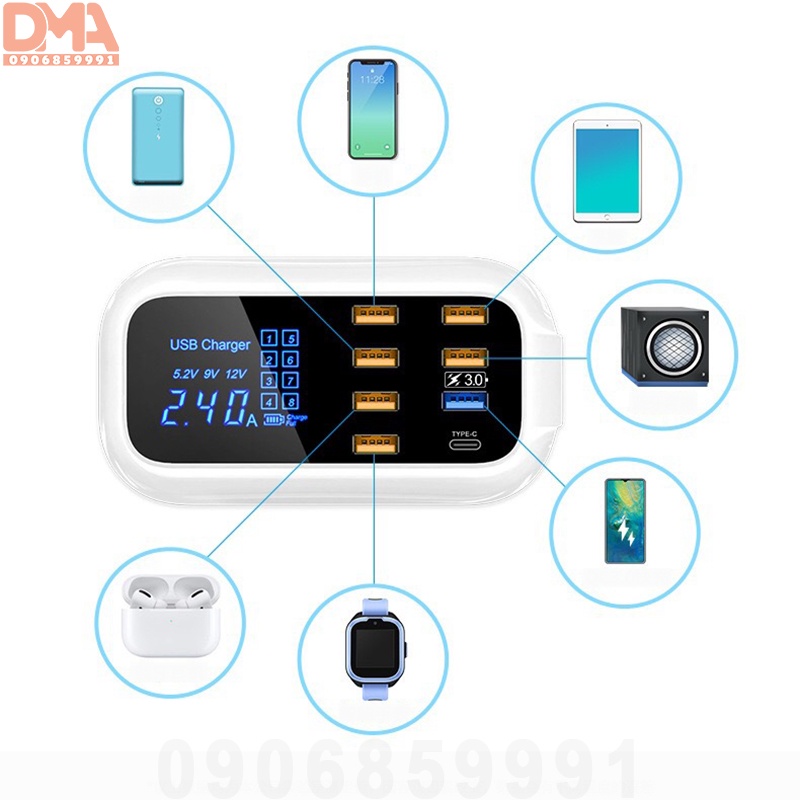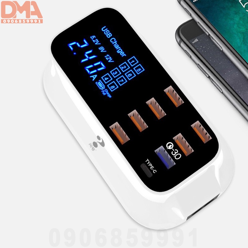 Máy tính & Laptop > Phụ Kiện Máy Tính > Bộ chia cổng USB & Đọc thẻ nhớ || Bộ ổ cắm sạc,dock sạc ổ cắm điện usb điều chỉnh điện áp 8 socket 40W (CD-A19)Còn hàng