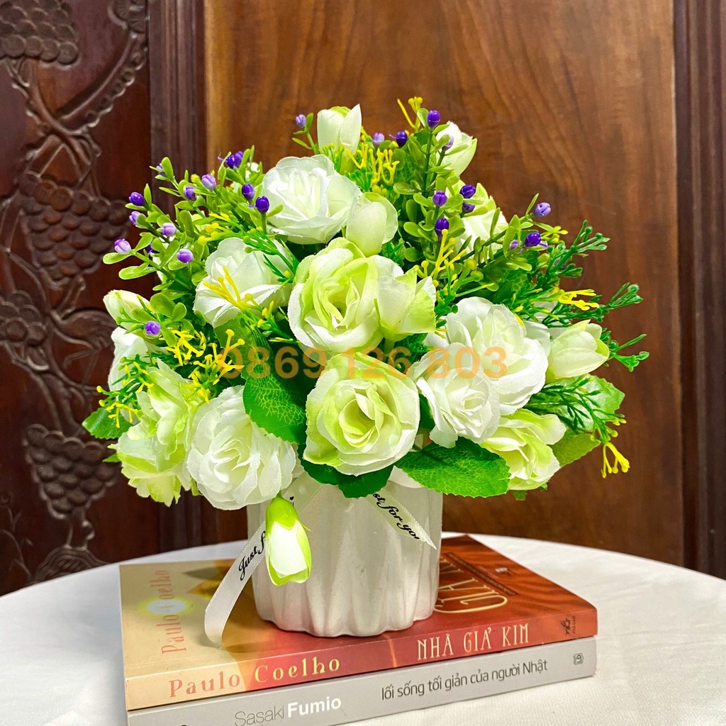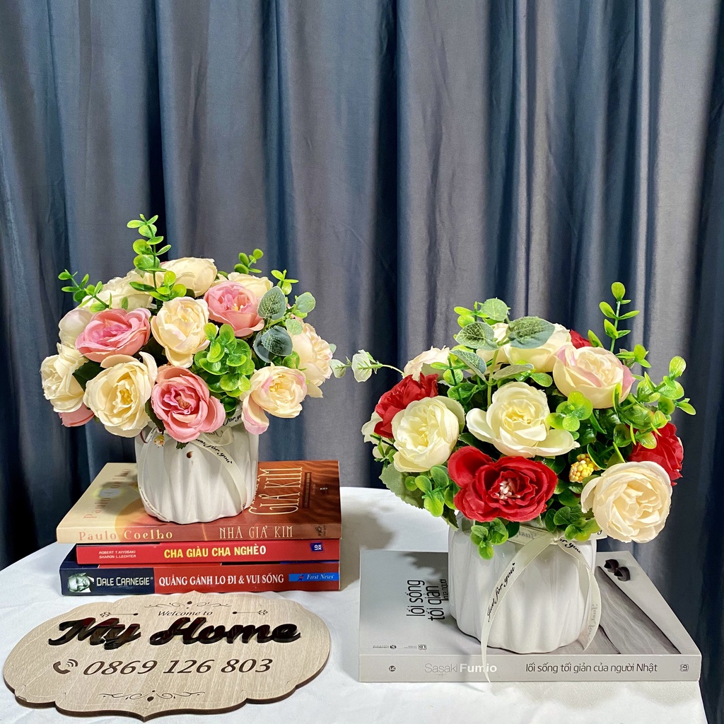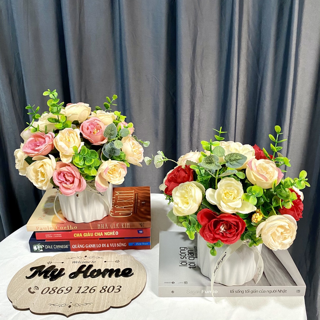 Nhà cửa & Đời sống > Trang trí nhà cửa > Hoa trang trí || (Cắm sẵn) Chậu hoa hồng trứng hoàng gia cực sang chảnh 30cm*40cm, trang trí decor nhà đẹp, để bàn phòng khách.Còn hàng