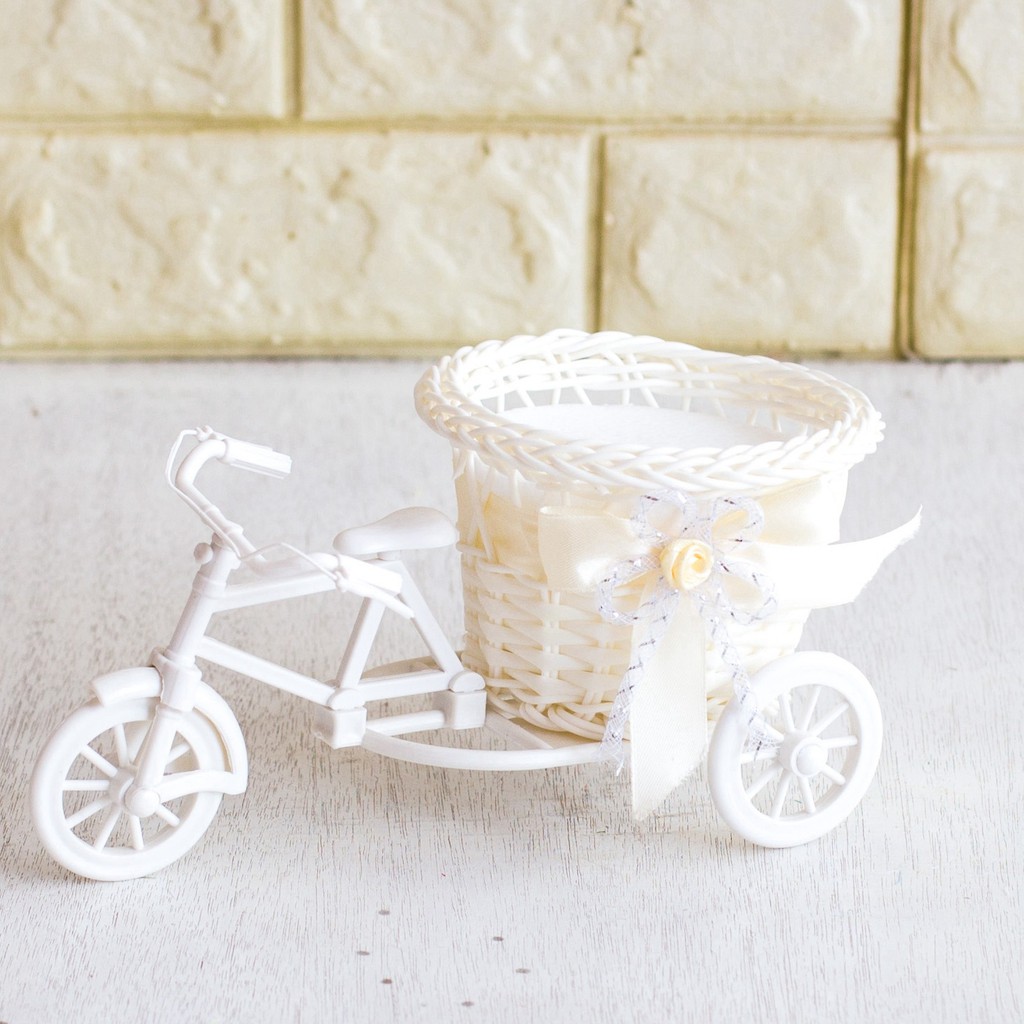 (Cắm sẵn) Xe đạp nhựa kèm hoa tỉ muội, trà bi, hướng dương, cánh bướm, chiêm điểm - Lọ hoa giả - Trang trí, để bàn