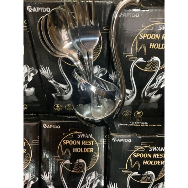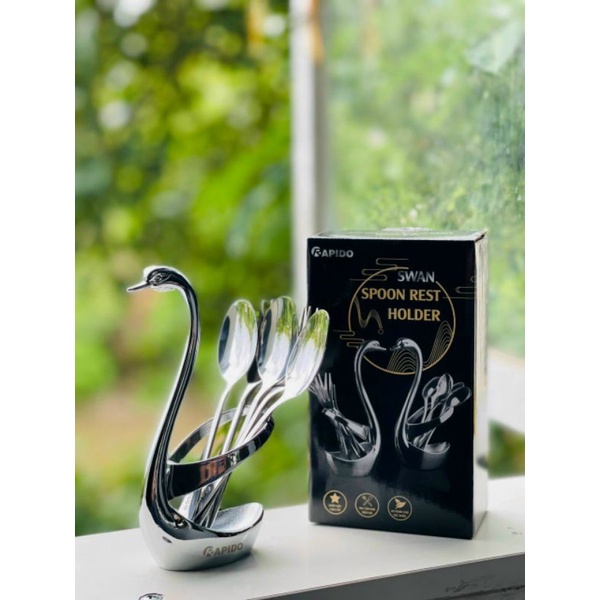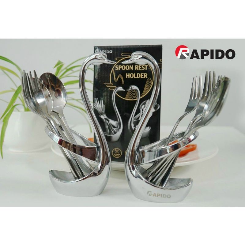 Giới thiệu Bộ cắm thìa dĩa thiên nga decor - Bộ cắm kèm 3 thìa + 3 đĩa thiên nga Rapido