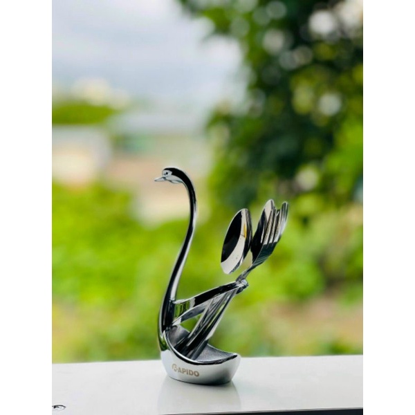 Bộ cắm thìa dĩa thiên nga decor - Bộ cắm kèm 3 thìa + 3 đĩa thiên nga Rapido