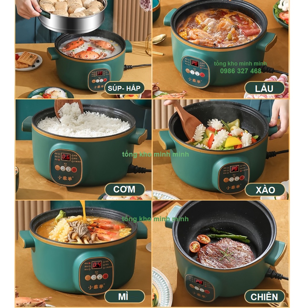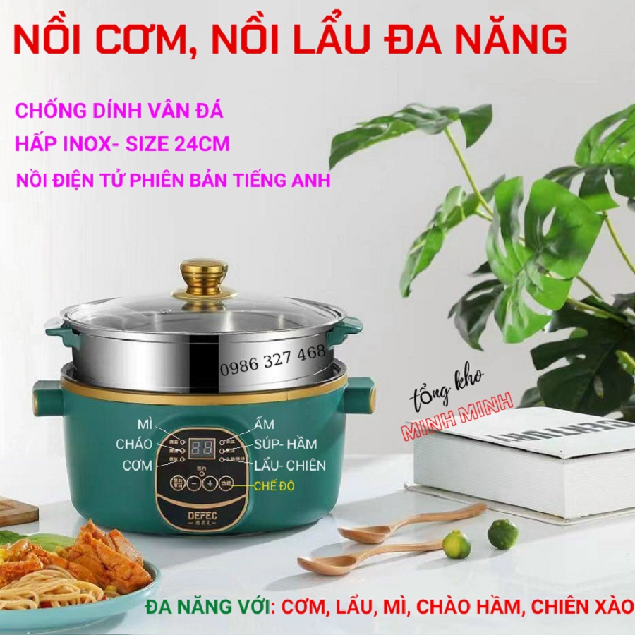 Giới thiệu [CẢM ỨNG-P.BẢN TIẾNG ANH] Nồi Lẩu Mini, Nồi Lẩu Điện Đa Năng Kèm Hấp Inox Cao Cấp⚡Nấu Cơm,Lẩu,Canh, Chiên, Xào,Cháo,Hấp⚡