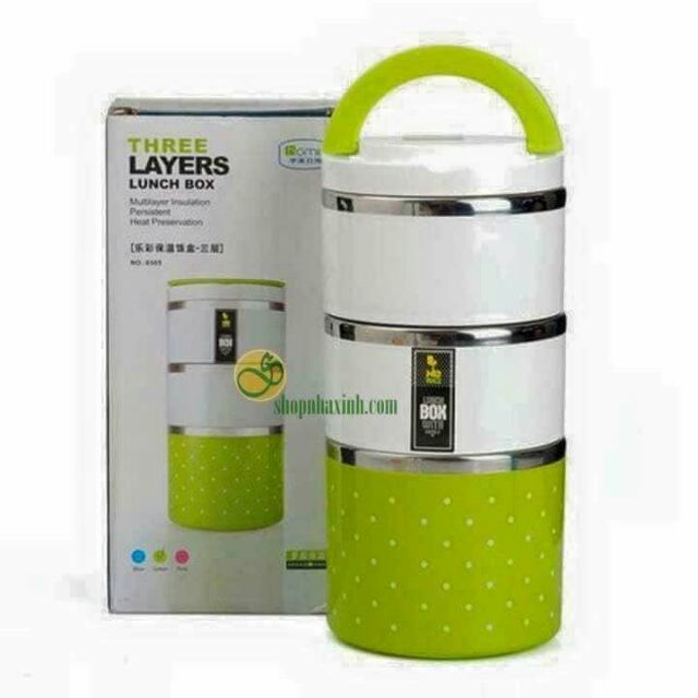 Nhà cửa & Đời sống > Bộ đồ bàn ăn > Bình nước & phụ kiện || Camen inox giữ nhiệt 3 ngăn. Thiết kế đẹp mắt, có 2 quai xách đính kèm tiện lợi. Mỗi ngăn đều có ron cao su tránh tràn.Còn hàng