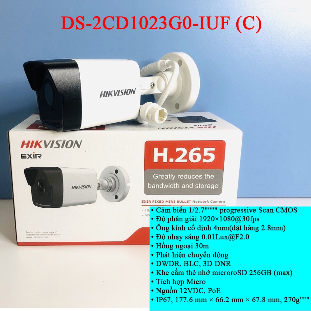 + 1/2/3/4c: Mắt camera ip 2mp DS-2CD1023G0-IUF ( mắt thân trụ) hoặc DS-2CD1123G0-IUF ( mắt bán cầu) [quý khách vui lòng chọn số lượng mắt khi đặt hàng].
