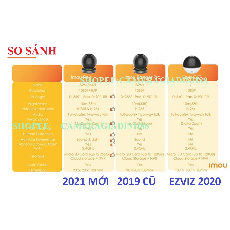 Camera 2M 4M WIFI Xoay 360 Trong Nhà REX A26LP A46LP A26HP IMOU 1080P RANGER PRO DAHUA DSS A22ep