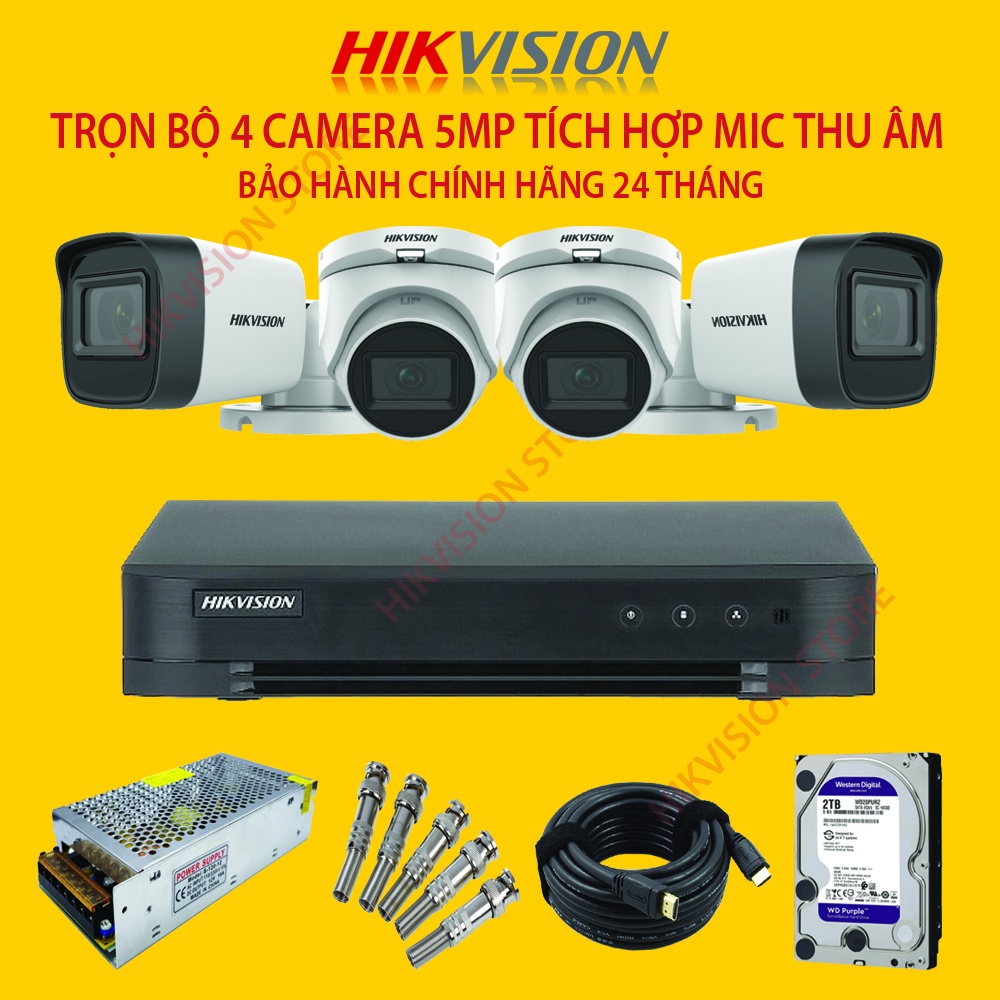 [ CAMERA 5MP MIC thu âm ] Trọn Bộ Camera 4 Mắt Hikvision 5MP 2560 x 1944 bảo hành 24 tháng (FULL PHỤ KIỆN LẮP ĐẶT)