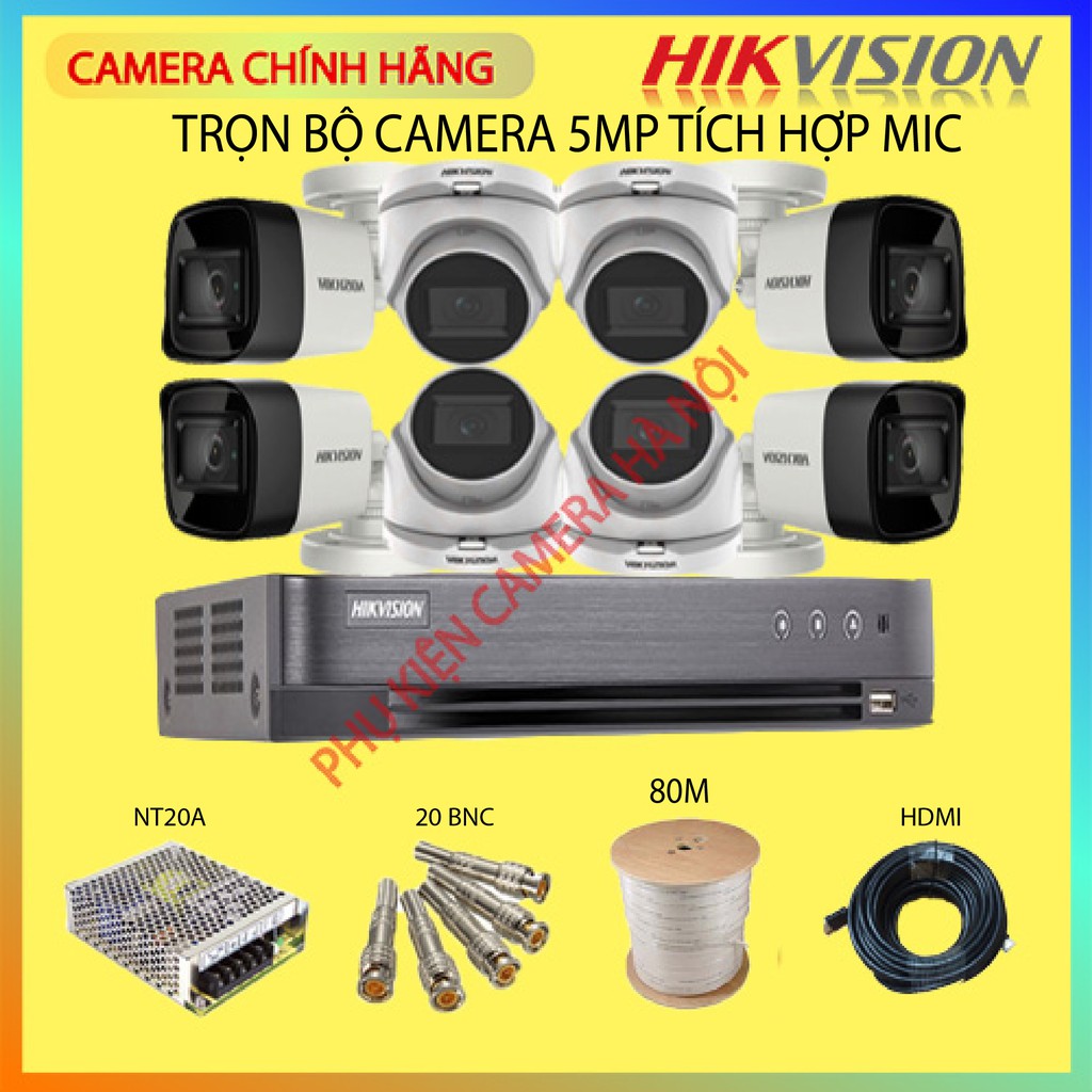 [ CAMERA 5MP MIC thu âm ] Trọn Bộ Camera 8 Mắt Hikvision 5MP 2560 x 1944 bảo hành 24 tháng (FULL PHỤ KIỆN LẮP ĐẶT)