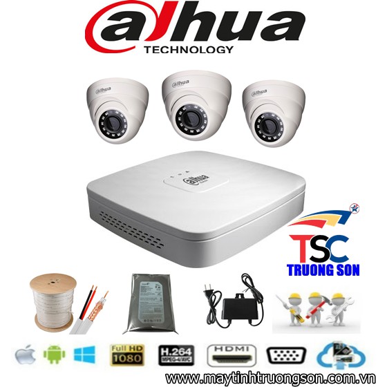 Bộ camera ahua 3 mắt 1.0+ 1 đầu ghi 1.0