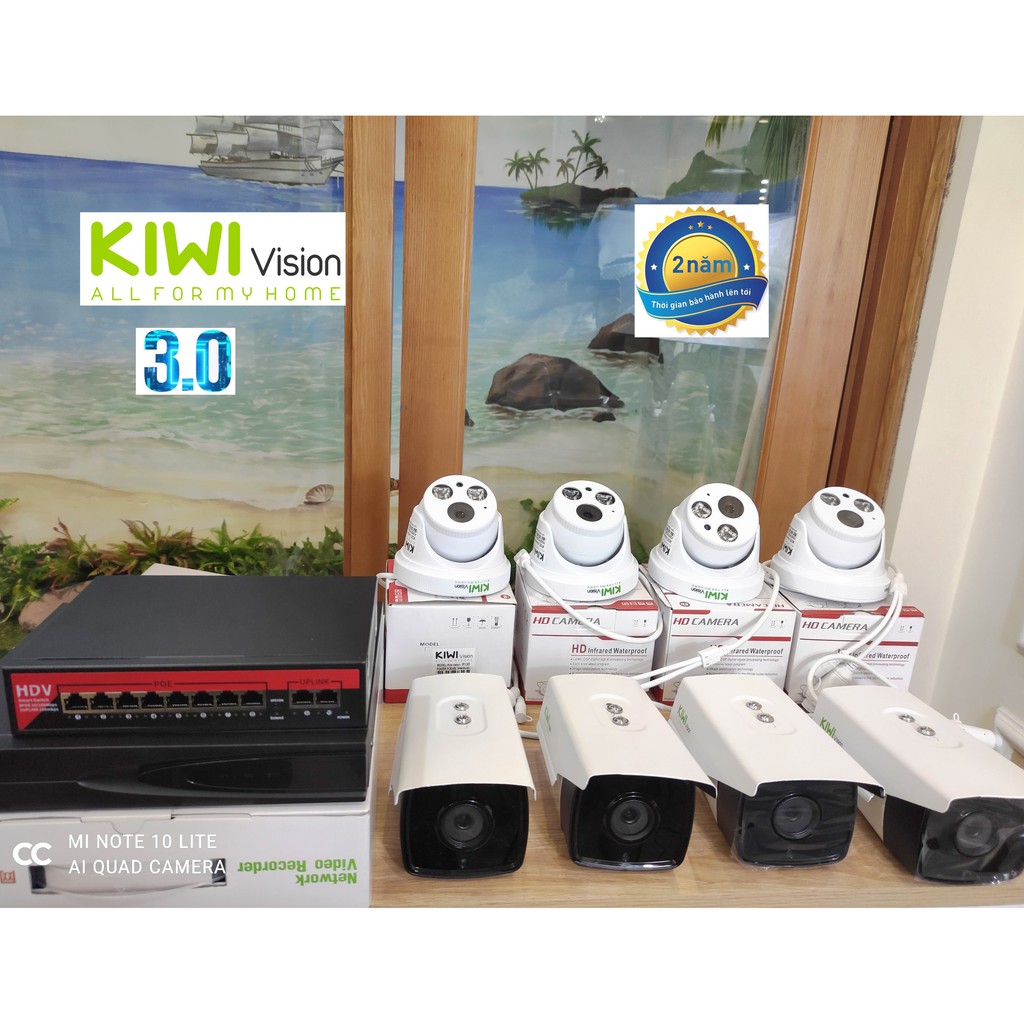 Bộ camera an ninh giám sát 8 mắt POE CÓ MÀU FULL HD 3.0, đầy đủ phụ kiện TẶNG hộp kỹ thuật