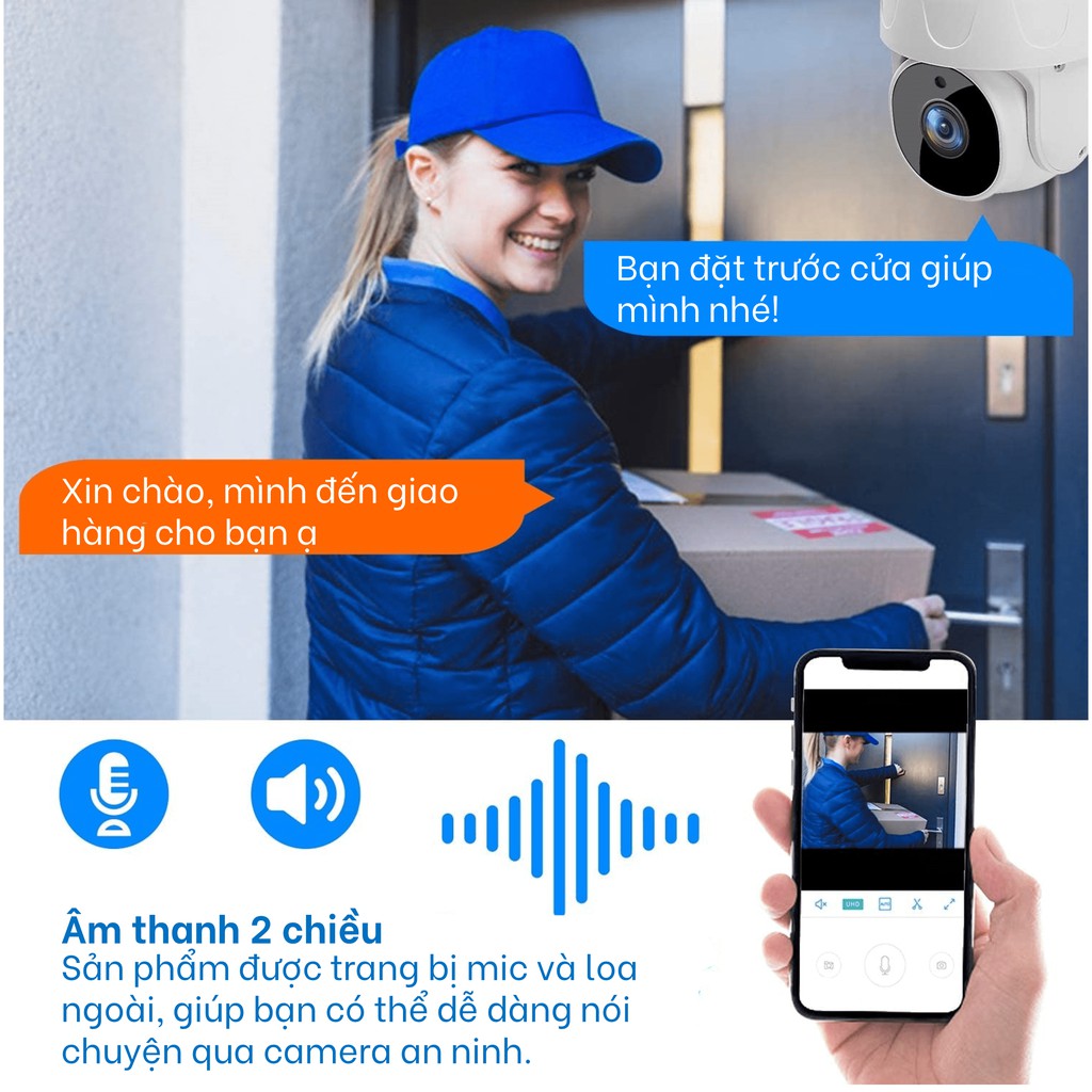 Hỗ trợ chức năng đàm thoại 2 chiều + Cảnh báo khi có vật thể chuyển động.