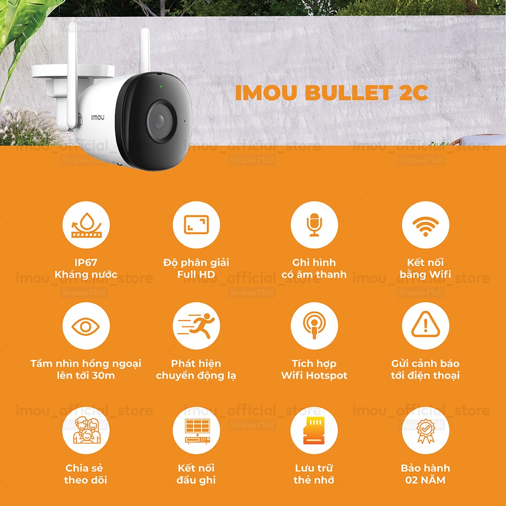 Giới thiệu CAMERA Bullet 2C WIFI IMOU IPC-F22P - Ngoài trời full HD 1080P - Tầm Nhìn Ban Đêm - Chống nước IP67 - BH 2 Năm