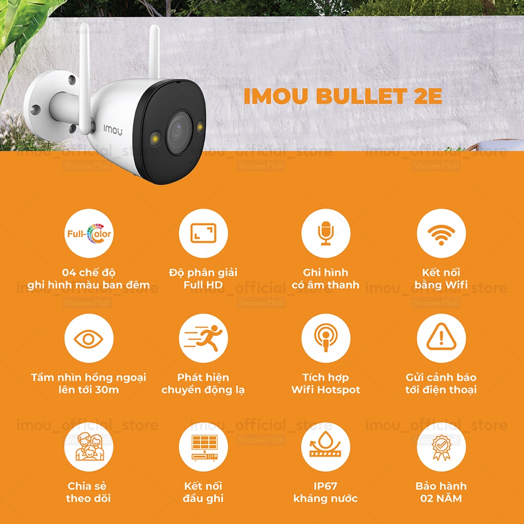 Camera Bullet 2E IP full HD Wifi Imou IPC-F22FP (Có màu ban đêm) - Ngoài Trời IP6 Giám Sát Hồng Ngoại - Bảo Hành 2 Năm