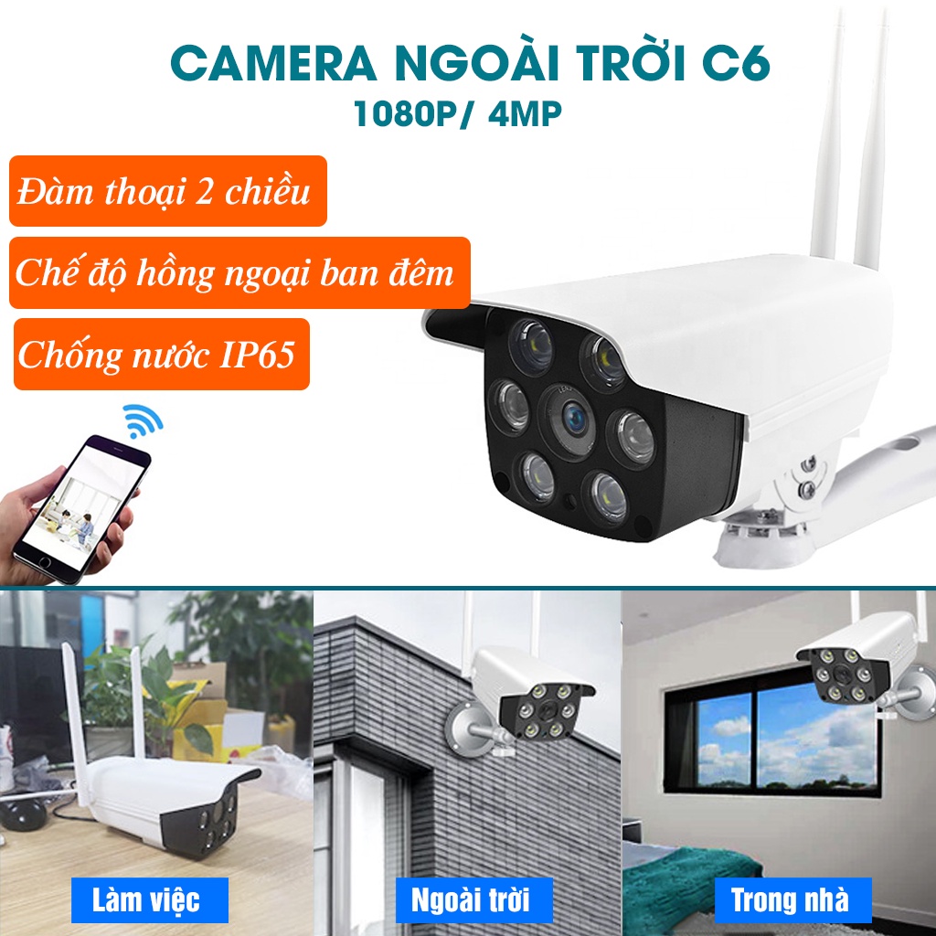 Camera C6 ngoài trời siêu chống nước độ phân giải 1080P 4MP hỗ trợ nhìn ban đêm, ghi âm, đàm thoại 2 chiều SELL SMART