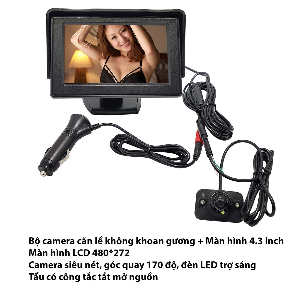 Camera cặp lề không cần khoan gương, màn hình LCD 4.3 inch