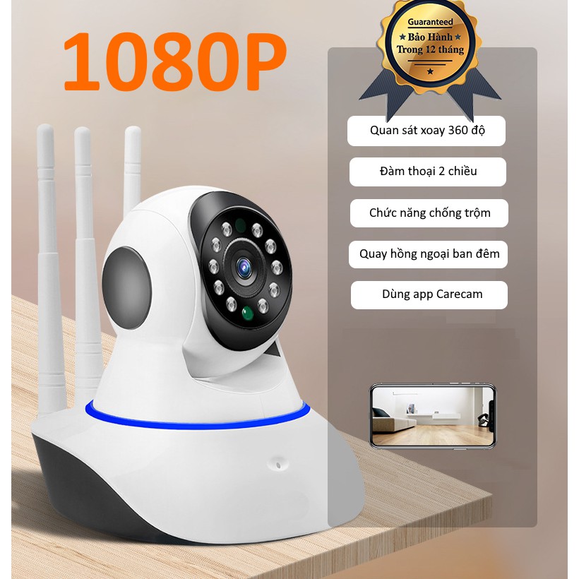 Cameras & Flycam > Camera giám sát > Camera giám sát kết nối internet || Camera CARECAM 3 râu FHD 1080P- Hình ảnh FHD sắc nét+ Thẻ nhớ 16GB 32GB 64GB tùy chọnCòn hàng