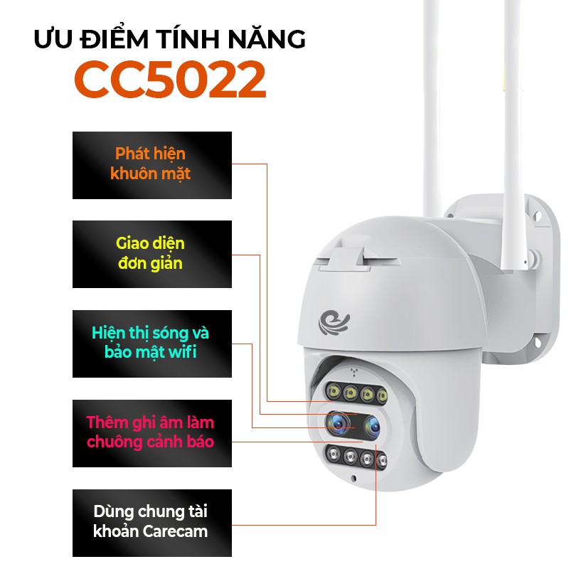 Cameras & Flycam > Camera giám sát > Camera giám sát kết nối internet || Camera Carecam Pro CC5022 Xoay Ngoài Trời 2.0Mpx FullHD 1080P, Hỗ Trợ Zoom Tới 10X - Hàng Chính HãngCòn hàng