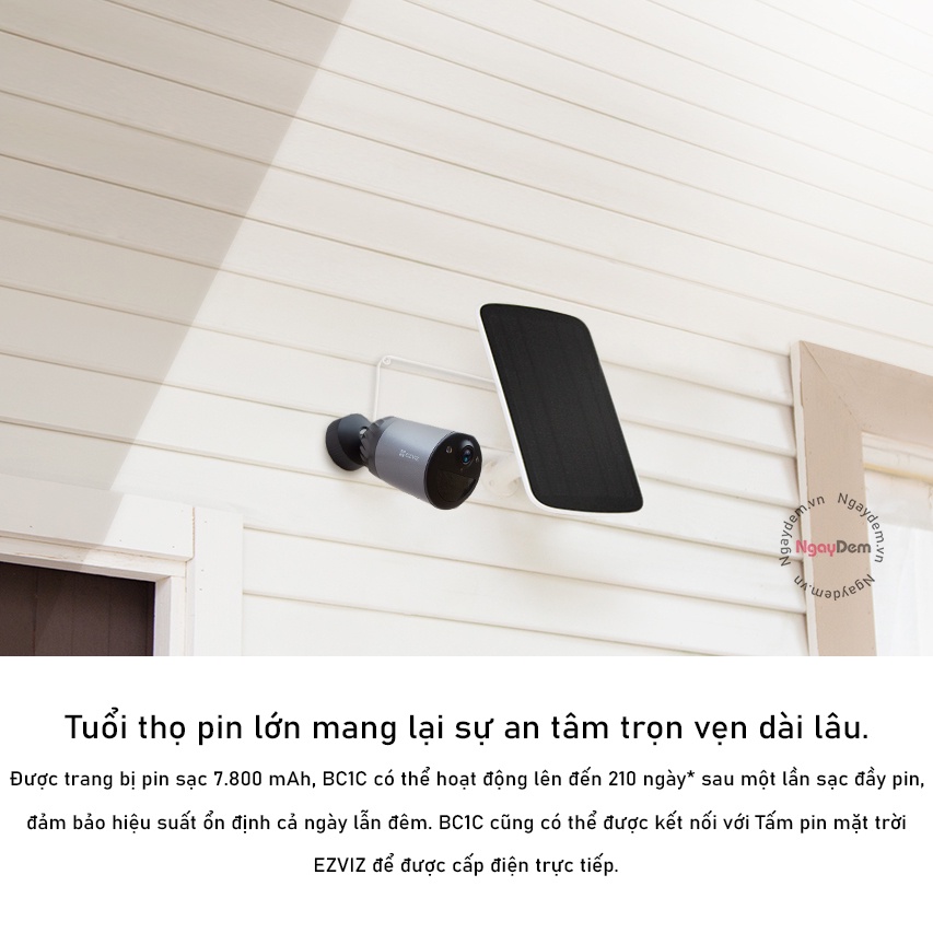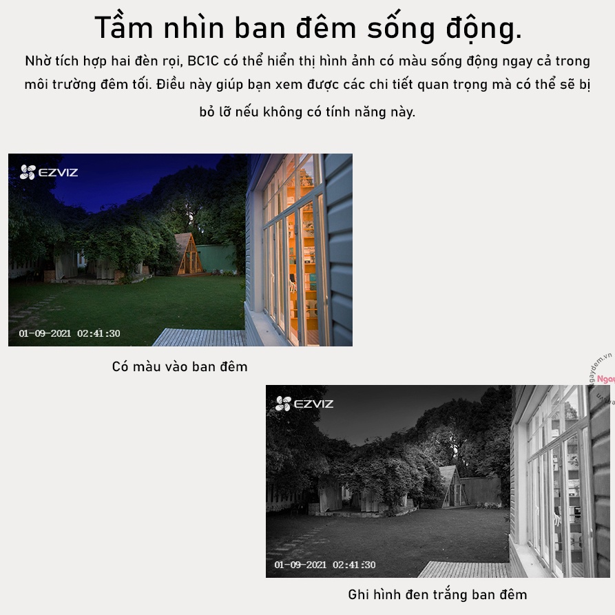 Giới thiệu Camera Chạy Pin Ngoài Trời Wifi Ezviz BC1C Full HD 1080P 2MP Đàm Thoại, Màu Ban Đêm - Tùy Chọn Thêm Pin Mặt Trời