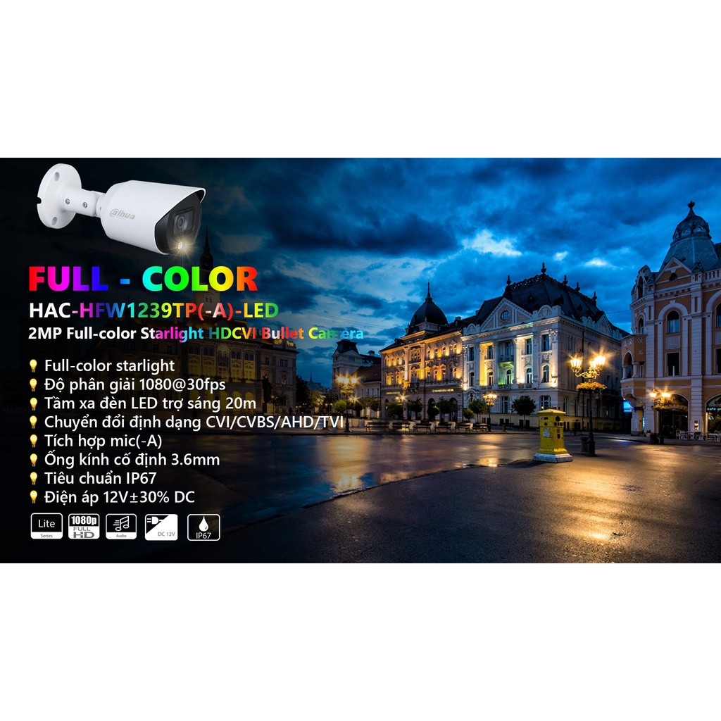 #Camera #Full_Color #2.0 #DAHUA #HAC-HDW1239TP-A-LED #Ban_đêm_có màu_có_mic.