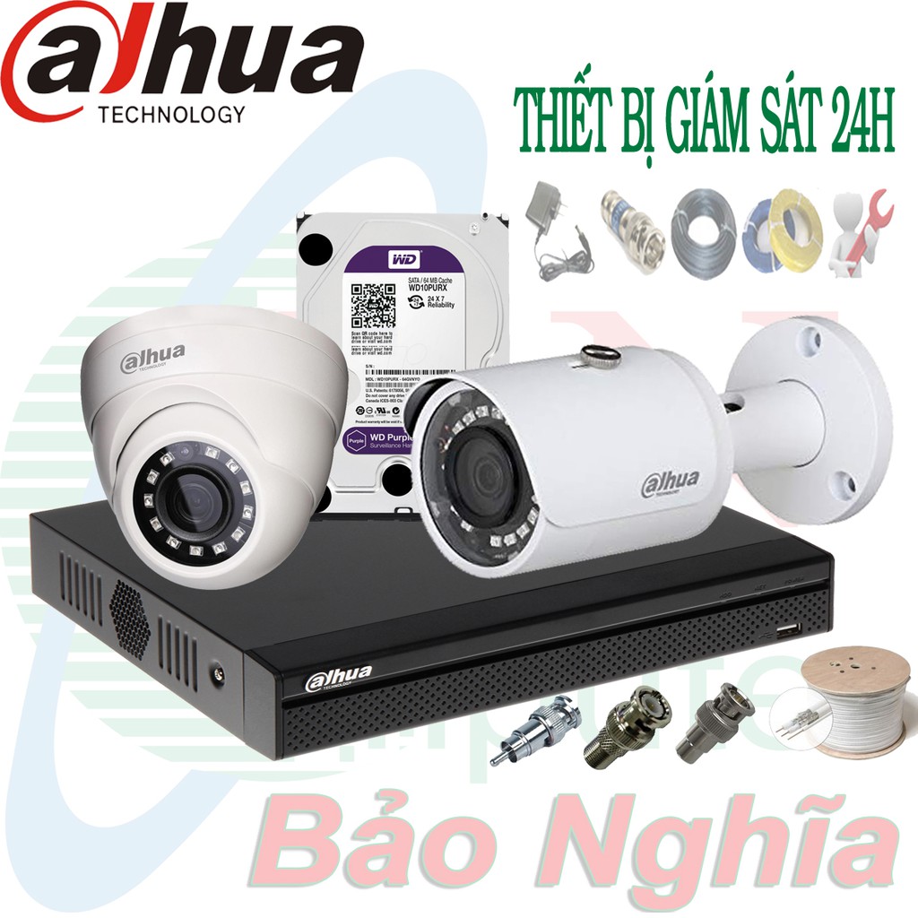 Bộ Camera Dahua Đầu 1A04 02 Mắt 1200MP Hoặc 1200SP. HDD 500G Westent tím